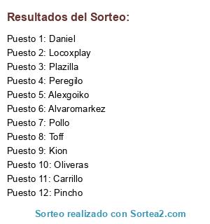 Lista de participantes: Oliveras, Toff, Kion, Pollo, Alexgoiko, Alvaromarkez, Peregilo, Pincho, Daniel, Carrillo, Locoxplay, Plazilla.