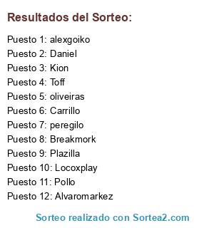 Lista de participantes: Kion, Alvaromarkez, Plazilla, Carrillo, Locoxplay, Pollo, Toff, Daniel, Breakmork, peregilo, oliveiras, alexgoiko.