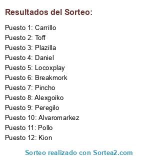Lista de participantes: Kion, Alexgoiko, Toff, Alvaromarkez, Plazilla, Carrillo, Locoxplay, Daniel, Breakmork, Peregilo, Pincho, Pollo.