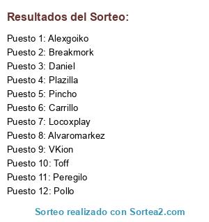 Lista de participantes: VKion, Alexgoiko, Toff, Alvaromarkez, Plazilla, Carrillo, Locoxplay, Daniel, Breakmork, Peregilo, Pincho, Pollo.