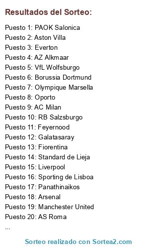 Lista de participantes: Oporto, AEK Atenas, Brondby IF, Feyernood, Olympique Marsella, Sevilla, Glasgow Rangers, Girondins Burdeos, Everton, PAOK Salonica, Aston Villa, RB Salzsburgo, Fiorentina, Manchester United, Werder Bremen, AS Roma, AZ Alkmaar, Galatasaray, VfL Wolfsburgo, Ajax, Athletic Club, Standard de Lieja, Real Madrid, Lazio, AC Milan, Arsenal, Young Boys, FC Twente, Panathinaikos, Borussia Dortmund, Liverpool, Sporting de Lisboa.
