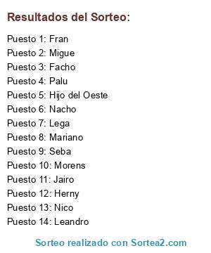 Resultados del sorteo: