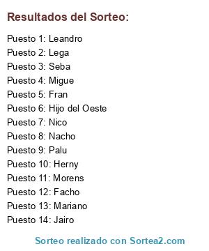 Resultados del sorteo: