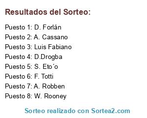 Lista de participantes: W. Rooney, D. Forlán, F. Totti, A. Cassano, A. Robben, S. Eto´o, Luis Fabiano, D.Drogba.