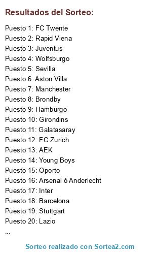 Lista de participantes: AEK, Arsenal ó Anderlecht, Aston Villa, AZ Alkmaar, Barcelona, Besiktas, Borussia, Brondby, Brujas, Celtic, Fiorentina, Galatasaray, Girondins, Rangers, Hamburgo, Helsinborg, Inter, Juventus, Lazio, Milan, Manchester, Oporto, Rapid Viena, AS Roma, Rosenborg, Sevilla, Sporting Lisboa, Stuttgart , FC Twente, Young Boys, FC Zurich, Wolfsburgo.