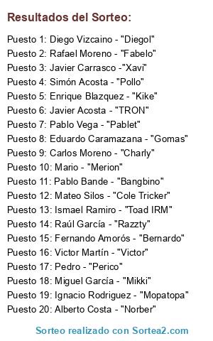 Lista de participantes: Raúl García - "Razzty", Javier Acosta - "TRON", Ignacio Rodriguez - "Mopatopa", Ismael Ramiro - "Toad IRM", Miguel García - "Mikki", Mateo Silos - "Cole Tricker", Simón Acosta - "Pollo", Carlos Moreno - "Charly", Pablo Vega - "Pablet", Mario - "Merion", Javier Carrasco -"Xavi", Enrique Blazquez - "Kike", Diego Vizcaino - "Diegol", Fernando Amorós - "Bernardo", Alberto Costa - "Norber", Eduardo Caramazana - "Gomas", Pablo Bande - "Bangbino", Pedro - "Perico", Rafael Moreno - "Fabelo", Victor Martín - "Victor".