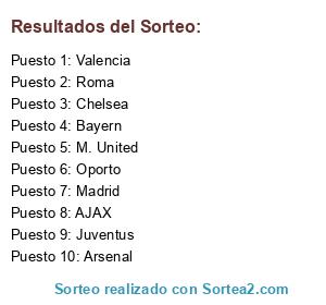Lista de participantes: M. United, Madrid, Chelsea, Arsenal, Juventus, Roma, Valencia, AJAX, Oporto, Bayern.