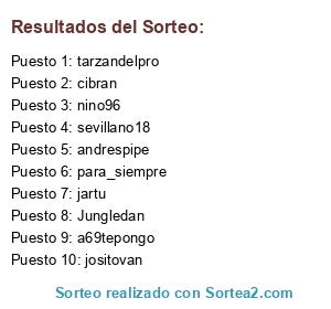 Lista de participantes: tarzandelpro, Jungledan, jositovan, nino96, a69tepongo, sevillano18, cibran, jartu, para_siempre, andrespipe.