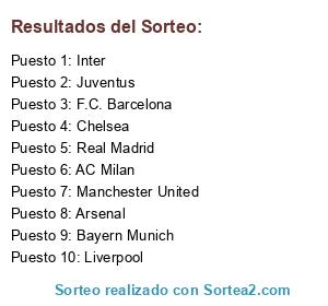 Lista de participantes: Arsenal, Inter, F.C. Barcelona, Bayern Munich, Real Madrid, AC Milan, Manchester United, Liverpool, Chelsea, Juventus.