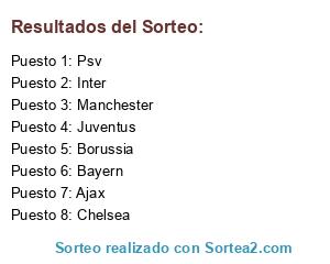 Lista de participantes: Inter, Chelsea, Bayern, Juventus, Manchester, Psv, Borussia, Ajax.