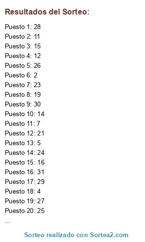 Resultados del sorteo: