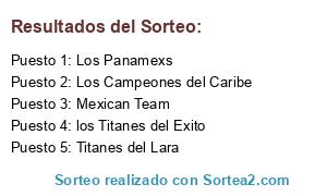 Lista de participantes: Los Campeones del Caribe, Mexican Team, Los Panamexs, Titanes del Lara, los Titanes del Exito.