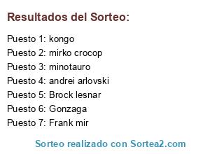 Lista de participantes: Frank mir, Brock lesnar, minotauro, kongo, mirko crocop, andrei arlovski, Gonzaga.