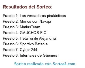 Lista de participantes: Monos con Navaja, Los verdaderos pirulácticos, Infernales de Güemes, GAUCHOS F C, MatiusTeam, Cyber 244, Hetairoi de Alejandría, Sportivo Betania.