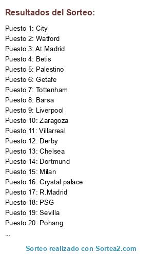 Resultados del sorteo: