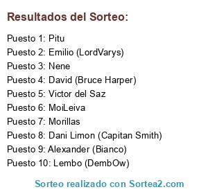 Lista de participantes: Lembo (DembOw), Pitu, Nene, Alexander (Bianco), David (Bruce Harper), Victor del Saz, Emilio (LordVarys), MoiLeiva, Dani Limon (Capitan Smith), Morillas.