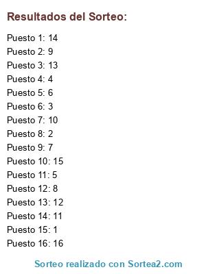 Resultados del sorteo: