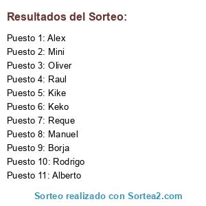 Lista de participantes: Borja, Raul, Keko, Oliver, Alberto, Manuel, Rodrigo, Alex, Reque, Kike, Mini.