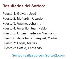 Lista de participantes: de la Roza Ezequiel, Martín, Urbani, Federico German, Galván, José, Moffardin Ricardo, Aquino, Johanna, Fogel, Matías, Sottile, Fernando, Amarillo, Juan Pablo.
