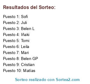 Resultados del sorteo: