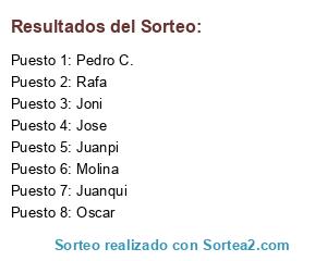 Lista de participantes: Oscar(3 participaciones), Juanqui(5 participaciones), Jose(8 participaciones), Molina(11 participaciones), Pedro C.(14 participaciones), Juanpi(17 participaciones), Joni(19 participaciones), Rafa(23 participaciones).