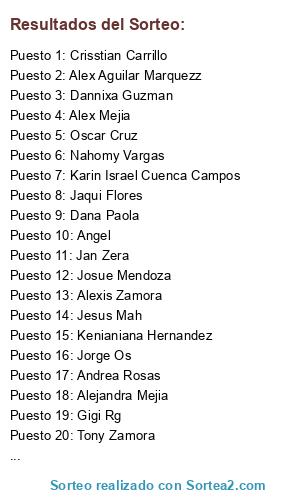 Lista de participantes: Jane Rodriguez , Danny Av , Alex Aguilar Marquezz , Andrea Rosas , Alein Styless , Eunice Daniel , Dana Paola , Nahomy Vargas , Angel , Tony Zamora , Alejandra Mejia , Jamelly Zamora , Alex Mejia , Jan Zera , Yosha Perez Islas , Athiary Montoya , Rusell Ceron Nuñez , Fer Gijon , Gigi Rg , Brisa Serrano Briones , Gerardo Camacho , Galilea Llamas , Sherlyn Alatrise , Gerardo Cedillo , Kenianiana Hernandez , Rox Salpa , Ale Hernandez , Jorge Os , Josue Mendoza , Karin Israel Cuenca Campos , Mary Rocha , Mauricio Payne , Oscar Cruz , Crisstian Carrillo , Geral RG , Hector Herrera , Stefany Lugo , Mon Granados , Jaqui Flores , Esmeralda Ortiz , Dannixa Guzman , Alexis Zamora , Jesus Mah.