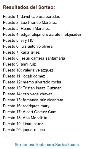 Lista de participantes: abraham gomez , Adgio Guzman , adi sutcliff , adylenne balderas , Albert Gomez Cam , alberto garcia , ale montoya , alejandra salas huerta , alejandra villa angeles , Alva Lu Fran , amelia rodriguez , Ana Mendieta , anni ruiz , arick pineda barragan , Carmen Urrutia , claudia vega , cris vega chavez , dan haggard , dari oico , david cabrera paredes , david meneses gonzalez , de ramirez samara , diana mercado , Diane Mondragon , Diego Marinez , edgar alejandro zarate melquiadez , edgar hernandez , edwin escamilla , efraiin martz , enrique lazcano , erick pineda barragan , erickstein vardu , estrella skinny ribs , evelyn torres , ezequiel PH , fabricio valencia , fany RG , fernanda ruiz alcantara , fernando herr g , gabriel guzman , hiram rosales , isaac gar , jahana vere , Jair Yayo medina , jaquelin luna , javier hernandez castelazo , Jenny Angel , jesliz muz , Jessica Ferrer , jesus cantera santamaria , jocab gomez , Jocelyn Gaytan Trejo , Jonhs Hernandez , josue aminadab aguilar jimenez , juan reyes , julio jonathan , karina vergara leon , karla espindola , karla tellez , katy ortiz , kinari perez , lalo carmona , laura duran , lazaro mendez , linda luna briones , liz tellez , Liza Fernandez , luis antonio olvera , luis m bustosrs , luis miguel acuña lopez , lunna martinez , Luz Franco Martinez , Maribel Callejas , Mariluu anve , marloon gomez , martha monica ayala muñoz , martin islas guerrero , mary hernandez , memo alvarado rocha , miguel angel salinas ramos , miguel mejia , ofely GE , paco rodriguez , paola ortiz , Ramon Martinez , rodriguez mary , sergio meza , Serna Mary Salvador , tavio gonzalez garcia , thom Gcia , tita san , Tristan Isaaz Guzman , valeria velazquez , viry HC , yamii horta , yoalyth peña , Yulss Espinoza , zuly zavala , rebel ga , manu robledo.