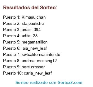 Lista de participantes: sta.paulichu (2 participaciones), anais_394 (2 participaciones), laia_new_leaf (2 participaciones), adita_28, nere.crosser, swtcalifornianintendo (2 participaciones), andrea_crossing12 (2 participaciones), Kimasu.chan, megamartillon, carla_new_leaf.