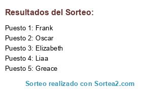 Lista de participantes: Elizabeth, Liaa, Frank, Greace, Oscar.