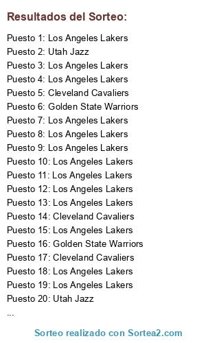 - Puesto 60: Los Angeles Lakers