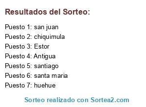 Lista de participantes: huehue, Estor, chiquimula, santiago, santa maria, san juan, Antigua.