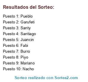 Lista de participantes: Santy, Pueblo, Santiago, Burro, Nacho, Juancin, Mariano, Garufeti, Fabi, Piyo.