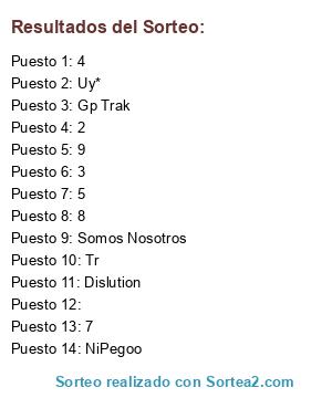 Lista de participantes: Gp Trak, Tr, Dislution, Uy*, NiPegoo, Somos Nosotros, 2, 3, 4, 5, 6, 7, 8, 9.