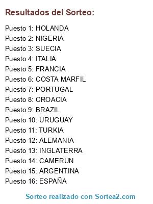 Resultados del sorteo:
