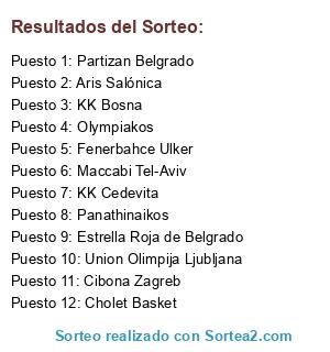 Lista de participantes: Partizan Belgrado , Cibona Zagreb , Maccabi Tel-Aviv , KK Bosna , Aris Salónica , Olympiakos , Panathinaikos , Estrella Roja de Belgrado , Fenerbahce Ulker , Cholet Basket , Union Olimpija Ljubljana , KK Cedevita, .