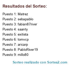 Lista de participantes: sebapablo, aricarp, tomvcp, saanty, fabian87river, millo80, exitista, PabloRiver19, Matrez.