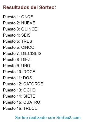 Resultados del sorteo: