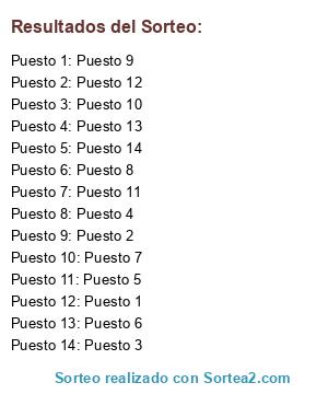 Lista de participantes: Puesto 1, Puesto 2, Puesto 3, Puesto 4, Puesto 5, Puesto 6, Puesto 7, Puesto 8, Puesto 9, Puesto 10, Puesto 11, Puesto 12, Puesto 13, Puesto 14.