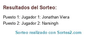Lista de participantes: Jugador 1: Jonathan Viera, Jugador 2: Narsingh.