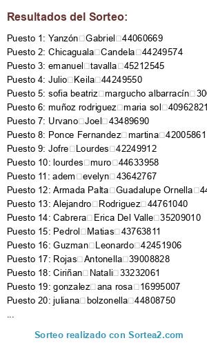 - Puesto 237: ORIZ CRISTIAN 41270867