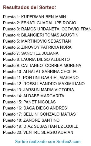 Lista de participantes: ABALOS ARACELI DEL PILAR, ABALOS FERNANDO, ABALOS GASTON, ABALOS VALENTIN ELIAS, ABALSAMO MARIA ROSA, ABARZA LUCIANO FACUNDO, ABATE GUSTAVO, ABATE JAZMIN, ABDALLAL DIEGO HERNAN, ABDALLAL MARCELO, ABECASIS NATALIA FLORENCIA, ABEIJON FRANCO, ABEIJON SANCHEZ LEANDRO, ABEIJON SARQUIS GUSTAVO ALEJANDRO, ABEIJON SARQUIS MARIA LAURA, ABEIJON SARQUIS SEBASTIAN, ABELLA FRANCISCO, ABELLA RAMIRO, ABELLA ROGELIO, ABERBACH VIVIANA, ABIUSI VERONICA JULIA, ABOY SILVIA MONICA, ABRAM DANTE, ABRAM LUJAN JOSE MARIA, ABRAM LUJAN VALENTINO, ABRAMOFF GUILLERMO, ABRAMOVICH ANA LUZ, ABREY GRETHEL, ABREY GUADALUPE, ABREY GUILLERMO DANIEL, ABRILE MATIAS NICOLAS, ABRILE SERGIO ABEL, ABULAFIA MAURO FEDERICO, ACEVEDO ABEL, ACEVEDO ANABELLA SOLEDAD, ACEVEDO MARIANO, ACOSTA ALEJANDRO ISIDRO, ACOSTA ARIEL IVAN, ACOSTA GREGORIO LAUTARO, ACOSTA MATIAS JOAQUIN, ACOSTA RAUL ALFREDO, ACOSTA ROCIO ALEJANDRA, ACOSTA ROMAN MARTIN, ACOSTA SANTIAGO, ACST ARIEL MARIANO, ACST BENJAMIN, ACST DIEGO, ACST VALENTINA, ACUÑA SEBASTIAN ARIEL, ADAMO MAROTTI AGUSTIN, ADAMO MIRTA NOEMI, ADAMOWICZ IVAN, ADUNA GUILLERMO, ADUNA JOSE LUIS, ADUNA VALENTIN, AGLIOZZO GRACIELA, AGOSTI DIEGO MARTIN, AGRANATTI MERCEDES, AGUERO DAMIAN, AGUERREBEHERE MARTIN, AGUIAR FERNANDO MIGUEL, AGUIAR GREGORIO BAUTISTA, AGUIAR MAXIMILIANO, AGUILAR MARIA CECILIA, AGUILAR MAXIMILIANO, AGUILERA ANIBAL ALBERTO, AGUILERA MATEO, AGUILERA MORENA, AGUILERA VERGARA AYLIN, AGUINAGA FABIO FRANCO, AGUIRRE HUGO MARTIN, AGUIRRE IVAN CRISTIAN, AGUIRRE JUAN PABLO, AGUIRRE MATIAS AGUSTIN, AGUIRRE MERINO MAGALI, AGUIRRE OSCAR ALFREDO, AGUIRRE RAUL ENRIQUE, AGUZZI DANIELA LAURA, AIDUC ANDREA, AINCIART GOLDBERG JULIAN, AISCAR MARTIN NICOLAS, AISEMBERG DANEL, AISEMBERG DANIEL, AISEMBERG LEANDRO FABIAN, AITA PISANO LUCAS GABRIEL, AIZENBERG MAXIMILIANO, AJATA JONATHAN, ALABART DIEGO, ALAIMO FACUNDO, ALAIMO GONZALO SEBASTIAN, ALARCON ENRIQUE A., ALARCON MARIA LUISA, ALARCON SILVIA KARINA, ALBA CRISTIAN EDUARDO, ALBALAT SABRINA CECILIA, ALBANO ALEJANDRO ROBERTO, ALBARENQUE MORELLA, ALBE DYLAN DIEGO, ALBE GASTON DIEGO, ALBECK ANDRES SEBASTIAN, ALBERIO ALBERTO MIGUEL, ALBERIO MARTIN, ALBERIO SEBASTIAN MARIA, ALBERTI JUAN FRANCISCO, ALBERTO NICOLAS, ALBERTO RODRIGO CARLOS, ALBORNOZ CARLOS ALBERTO, ALBORNOZ LUCAS NICOLAS, ALBORNOZ PABLO DIEGO, ALBORNOZ TOMAS AGUSTIN, ALBRECHT KARINA ALEJANDRA, ALCALDE HUGO ALEJANDRO, ALCALDE PABLO MARTIN, ALCARAZ MAXIMILIANO, ALDABE MARGARITA, ALDAY MYRIAM DIANA, ALDERETE CRISTIAN LEANDRO, ALDERETE THIAGO JOAQUIN, ALEGRE FLORENCIA NAHIR, ALEGRE RONCHI LARA, ALEGRO CARLA PATRICIA, ALEN DANIELA FLORENCIA, ALEN NAHUEL LUCAS, ALESSANDRONI OSCAR, ALFIZ FELIPE, ALFONSO LORENA, ALI DARIO MARTIN, ALI YANELLA MARIA, ALIANELLI CAMILA BELEN, ALIANELLI JAVIER, ALIANELLI MATIAS, ALIANELLI RAMIRO, ALLEGRETTO TROIANI GRACIELA, ALMALUEZ DANIEL ESTEBAN, ALMARA GERONIMO, ALMARA ROGELIO GUSTAVO, ALMARA SANTIAGO, ALMEIDA DE D ANGELO SUSANA BEATRIZ, ALMIRON DIEGO, ALMONACID LOLA, ALMUIÑA LUIS, ALONSO MARIANO, ALONSO ARIANA, ALONSO FERNANDO, ALONSO GUILLERMO DANIEL, ALONSO JOAQUIN, ALONSO JUANA, ALONSO LISANDRO ANDRES, ALONSO MARIEL, ALONSO SABRINA, ALOY TOMAS GUILLERMO, ALTAMIRANDA MARIANO, ALTAMIRANO PILAR, ALVARENGA CARMIXANO AGUSTIN, ALVAREZ ANALIA VERONICA, ALVAREZ BOGNAR VICENTE, ALVAREZ CRISTIAN, ALVAREZ DE SINGLAU MALENA, ALVAREZ DIEGUEZ M. ISABEL, ALVAREZ EZEQUIEL GERMAN, ALVAREZ FEDERICO ALEXANDER, ALVAREZ GUILLERMO, ALVAREZ JORGE ALBERTO, ALVAREZ JUAN SEBASTIAN, ALVAREZ JULIAN MARTIN, ALVAREZ LOPEZ JOSE LUIS, ALVAREZ MARIANO, ALVAREZ MARTIN SANTIAGO, ALVAREZ MOREYRA YANINNA AYELEN, ALVAREZ NORBERTO, ALVAREZ ROLDAN FEDERICO IGNACIO, ALVAREZ ROLDAN MILO, ALVAREZ ROLDAN ONA, ALVAREZ ROLDAN VERA, ALVAREZ ROSANA ANDREA, ALVAREZ SABINO SERGIO, ALVAREZ SANTIAGO, ALVAREZ SILVINA, ALVAREZ TIERNO ALISHA MAIA, ALVES SERGIO ANDRES, AMADO AGOSTINA DEL PILAR, AMADO GUADALUPE DE LA PAZ, AMADO JAVIER, AMADO PABLO OMAR, AMARAL DANIEL IVAN, AMARILLA FELICIA, AMATI MARIA FERNANDA, AMATO FRANCISCO, AMATO GUSTAVO GERMAN, AMATO JORGE DAMIAN, AMATRUDA GUSTAVO, AMATRUDA MATEO I., AMATRUDA PABLO RUBEN, AMATRUDA THIAGO JOAQUIN, AMAYA JUAN JESUS, AMAYA VIOLETA, AMBROSINI STEFANO, AMEGHINO MARIA JULIA, AMENDOLARI DANIEL LEANDRO, AMENEDO DELFINA, AMESSA Y ANDRADA LUCIANO, AMIGO MATIAS VICENTE, AMIGO MURINIGO JOSE LUIS, AMOR ERNESTO, AMORIN EMANUEL ESTEBAN, AMUEDO RAMIRO, AMUEDO RAUL JORGE, ANDERSON OSCAR, ANDRADA CAROLINA, ANDRADA FERNANDO CARLOS, ANDRADA LUCIANA, ANDRADE ANGEL LUIS, ANDRADE JOSE LUIS, ANDRADE LIOR, ANDRADE WALDO OSCAR, ANDREANI HUMBERTO RODOLFO, ANDREONI LUCA, ANDREOZZI SUSANA, ANDRES MORA TRINIDAD, ANDRES OLIVIA MARIA, ANDRES SILVIA MARIEL, ANDRETTO SANTIAGO, ANDRIANI DIEGO, ANDRIOLI ADRIANA PATRICIA, ANDRIOLI DAMIAN ANDRES, ANDRIOLI MARTIN HORACIO, ANDRIOSSI GABRIEL, ANDRIOSSI LUCA, ANDRIOSSI SOFIA, ANDUJAR EDUARDO AURELIO, ANGELICI ALEJANDRO, ANGELINO SENISE LUCIA C., ANGELOTTI DIEGO HERNAN, ANIYAR SILVIA PERLA, ANOLLES LUIS MARIA, ANOLLES VICENTE, ANOLLES VICTORIA A., ANSELMO INES ASUNCION, ANTENUCCI JUAN PABLO, ANTENUCCI LILIANA, ANTOLINI RICARDO, ANTONELLI RICARDO ESTEBAN, ANTONELLI SANZ ANTONELLA, ANTONELLI SANZ DIEGO, ANTONELLI SANZ MICAELA, ANTONELLO JOAQUIN OMAR, ANTONELLO RODRIGO OMAR, ANTONIO JORGE DANIEL, ANTONIO MATIAS DANIEL, ANTUÑA ANA MARIA, ANTUÑA MARIANO FERNANDO, AÑEL SILVIA, AÑON VALERIA, APARICIO CHRISTIAN GABRIEL, APARICIO EMANUEL, APARICIO FERNANDO, APIP FEDERICO NICOLAS, APRILE MATIAS NICOLAS, AQUILA LORENA, AQUINO FLORENCIA MAGALI, AQUINO JULIETA, AQUINO VALENTINA, ARAGON MARCOS DANIEL, ARAGON TOMAS, ARAGONE ERNESTO, ARAKAKI FACUNDO KENJI, ARAKAKI JAVIER MARCELO, ARALDI HERNAN EDUARDO, ARALDI SANTIAGO, ARANDA ALEJANDRO ARIEL, ARAUJO REQUEJO AYRTON, ARBELAIZ FIDUCIA PABLO, ARBELO PATRICIO, ARBIA JULIO CESAR, ARBIA LUCA IGNACIO, ARCE AGUSTIN, ARCE CRISTIAN, ARCE ENRIQUEZ BRIANNA, ARCE FACUNDO, ARCE FERNANDO MATIAS, ARCE JOSEFA RAMONA, ARCE LUIS DANIEL, ARCE NAZARENO MARTIN, ARCE SOFIA, ARCERI FERNANDO JULIAN, ARCHIMBAL MARIA EUG