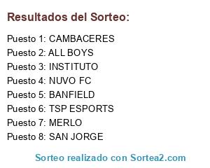 Lista de participantes: MERLO, BANFIELD, TSP ESPORTS, ALL BOYS, SAN JORGE, NUVO FC, CAMBACERES, INSTITUTO.