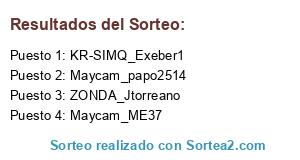 Lista de participantes: KR-SIMQ_Exeber1, ZONDA_Jtorreano, Maycam_ME37, Maycam_papo2514.