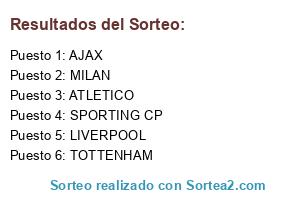 Lista de participantes: AJAX, SPORTING CP, LIVERPOOL, MILAN, TOTTENHAM, ATLETICO.