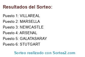 Lista de participantes: STUTGART, ARSENAL, VILLAREAL, MARSELLA, NEWCASTLE, GALATASARAY.