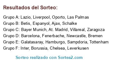 Lista de participantes: Fenerbache, Betis, Leverkusen, Ajax, Tottenham, Bayer Munich, Chelsea, Sampdoria, Las Palmas, Liverpool, Lazio, Newcastle, Inter, Barcelona, Borussia, Bremen, Galatasaray, Villareal, Espanyol, Oporto, Schalke, Zaragoza, Hamburgo, At. Madrid.