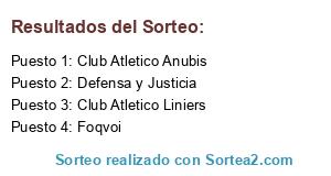 Lista de participantes: Defensa y Justicia, Club Atletico Liniers, Club Atletico Anubis, Foqvoi.