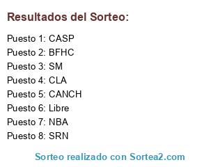 Lista de participantes: BFHC, CLA, NBA, CANCH, SM, CASP, SRN, Libre.