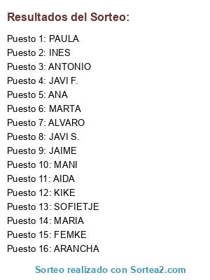 Resultados del sorteo: