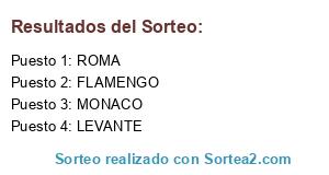 Lista de participantes: MONACO, FLAMENGO, LEVANTE, ROMA.